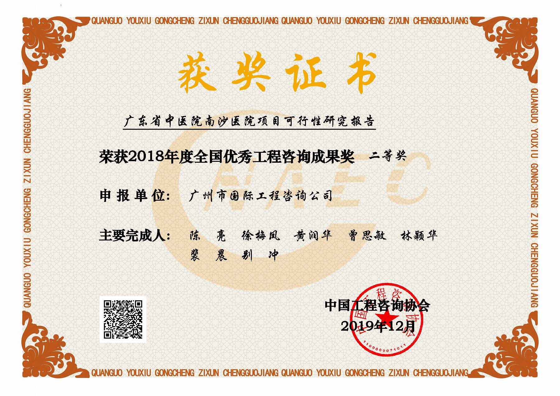 2018年度全國優秀工程咨詢成果二等獎(廣東省中醫院南沙醫院...