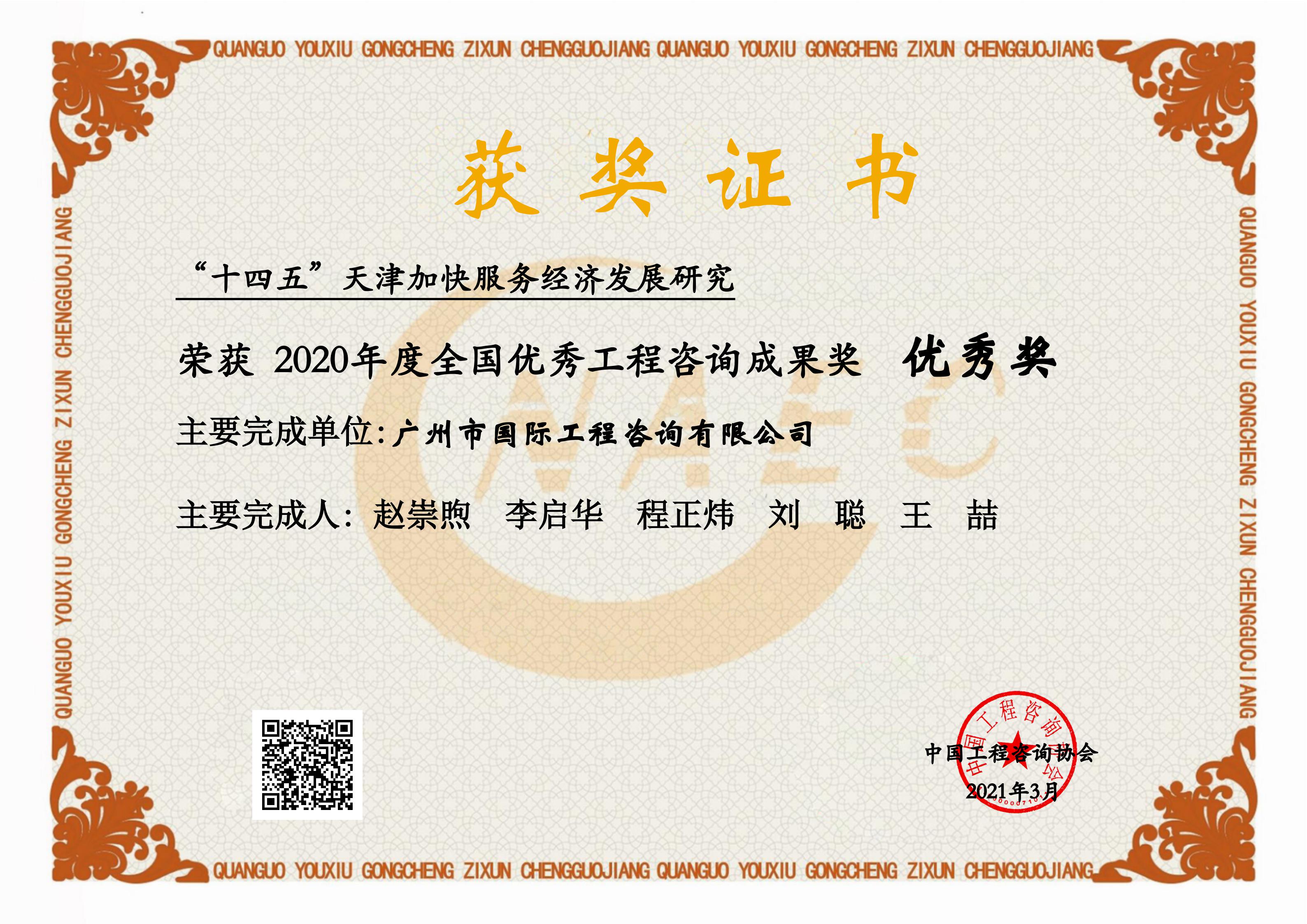 2020年度全國優秀工程咨詢成果獎優秀獎(“十四五”天津加快服...
