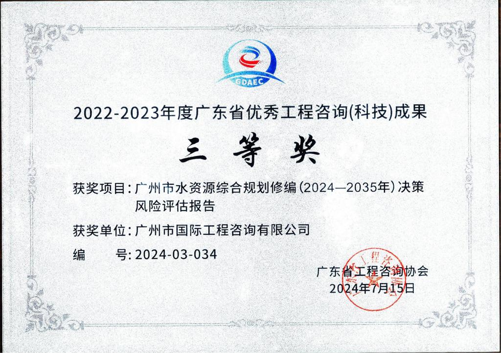2022-2023年度廣東省優秀工程咨詢(科技)成果三等獎(廣州市水...
