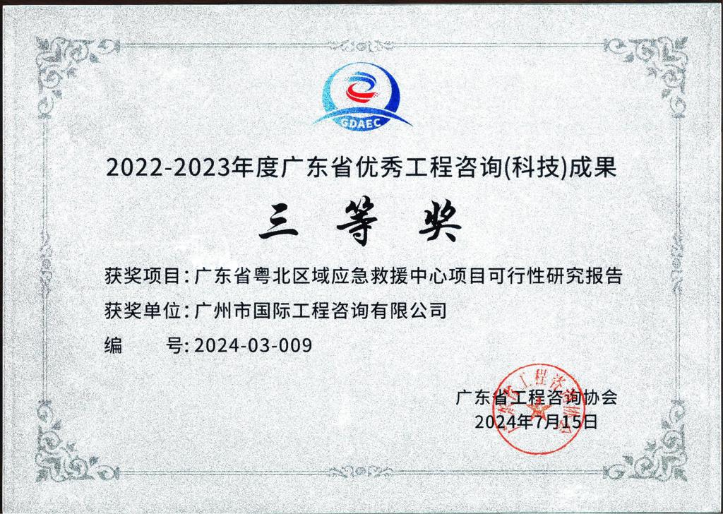2022-2023年度廣東省優秀工程咨詢(科技)成果三等獎(廣東省粵...