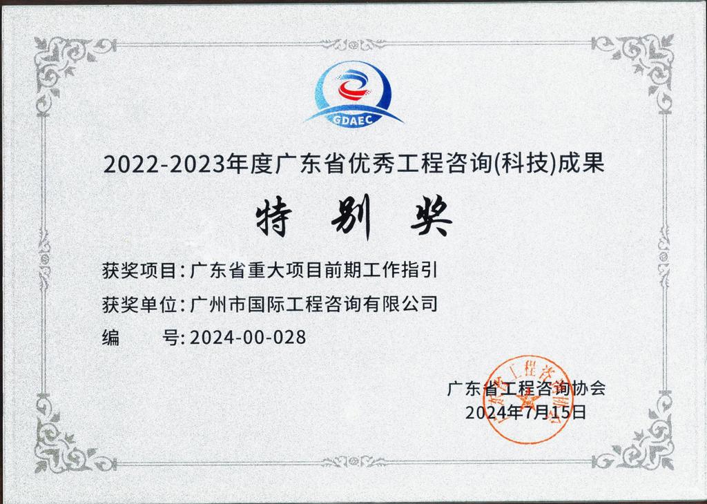 2022-2023年度廣東省優秀工程咨詢(科技)成果特別獎(廣東省重...