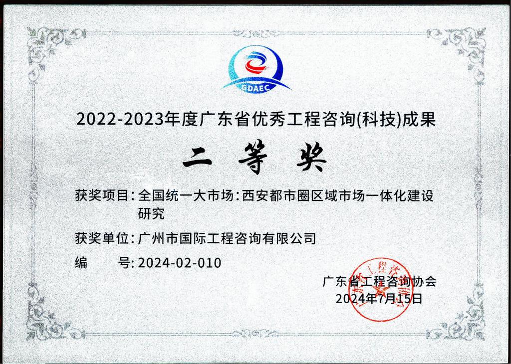 2022-2023年度廣東省優秀工程咨詢(科技)成果二等獎(西安都市...