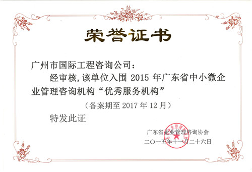 2015年廣東省中小微企業(yè)管理咨詢機構(gòu)“優(yōu)秀服...