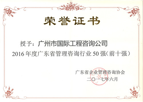 2016年度廣東省管理咨詢行業(yè)50強(前十強)