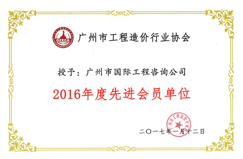 2016年度廣州市造價行業(yè)協(xié)會先進會員單位