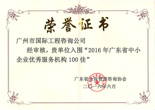 2016年廣東省中小企業(yè)優(yōu)秀服務機構(gòu)100佳