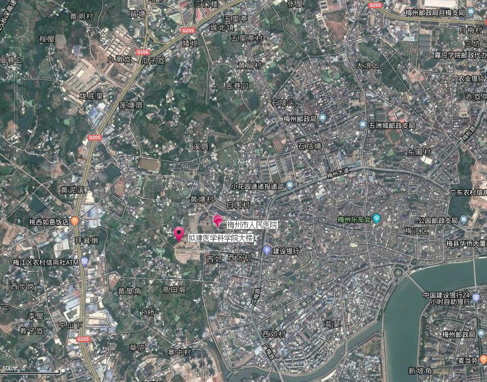 梅州醫學科學院大樓項目擬規劃建設于市梅江區黃塘路63號梅州市人民醫院黃塘院總部院內。本次建設內容為門急診、醫技科室、科研用房、行政管理、院內生活、保障系統、地下車庫等,總建筑面積為115585m2。