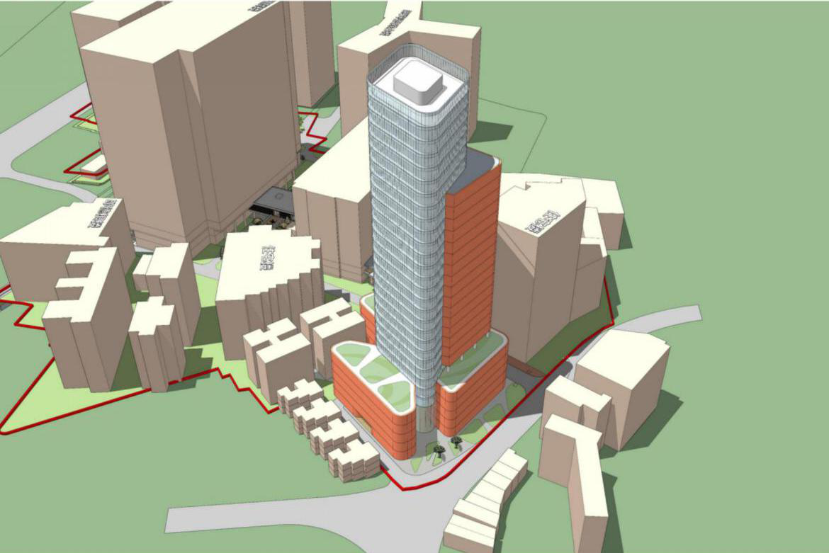擬建的恒大醫療中心為一棟科教綜合樓,總建筑面積為56600平方米,其中地上建筑面積37800平方米,地下建筑面積18800平方米。該建筑由裙樓和塔樓組成,建筑高度約128米。建設內容包括行政管理用房、住院病房、臨床培訓用房、職工餐廳等。
