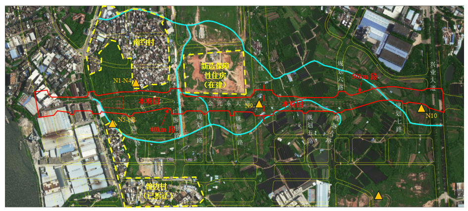 道路設計全長約1.82km。道路規(guī)劃為城市主干路,設計車速40、50km/h。由于保護古樹需要,濱河路至南大干線分離作東線道路與西線道路,南大干線至興業(yè)大道為一體式路基。主線道路規(guī)劃紅線標準段寬度為60m;分離式道路路段東線規(guī)劃寬度19米,西線為21米。行車道路面結(jié)構(gòu)類型采用瀝青混凝土路面。項目設計內(nèi)容主要是道路設計范圍內(nèi)的路基工程、路面工程、人行道、交通標線和標志、雨污水工程、橋梁工程、景觀綠化、照明工程等。根據(jù)道路建設需要,征收土地面積109255.26平方米。