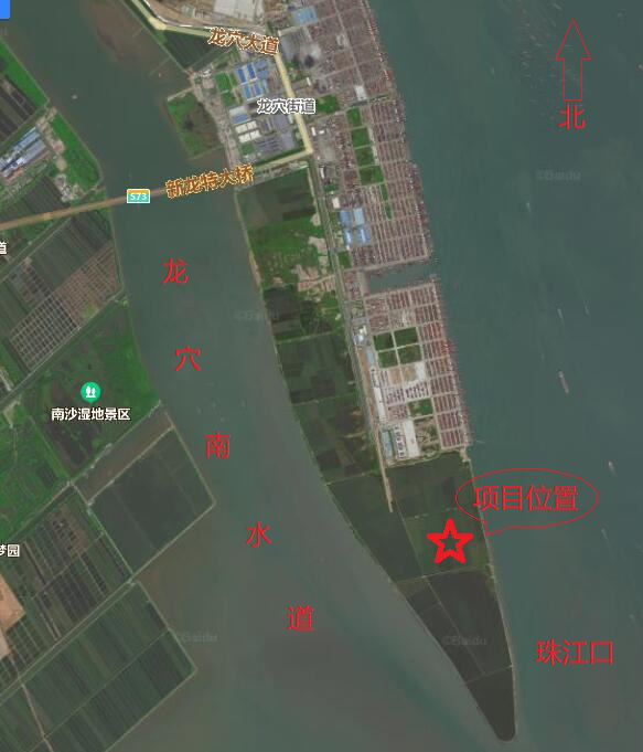 (二)建設(shè)地點(diǎn):廣州港南沙作業(yè)區(qū)南部順岸碼頭,規(guī)劃龍穴島島體的偏南端,北側(cè)(上 游)緊接在建的廣州港南沙港區(qū)國際通用碼頭工程,與已建南沙港區(qū)三期工程距離約1.5km。