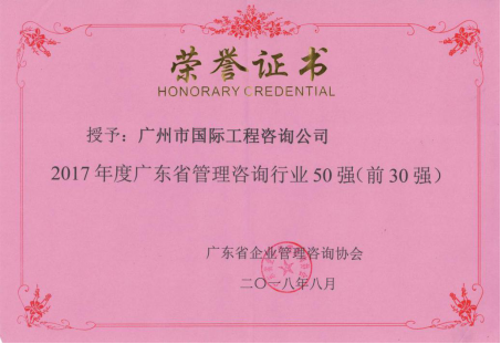 8月9日,廣東省企業管理協會于廣州鳴泉居會議中心開展了中小企業管理創新(國際)高峰論壇暨第十一屆國際管理咨詢師活動日活動。大會上進行了隆重的表彰,其中廣州市國際工程咨詢公司榮獲“2017年度廣東省管理咨詢行業50強”和“2018年廣東省中小企業優秀服務機構100佳”兩項獎項,在行業內樹立了標桿,激發了咨詢行業的新動力。
