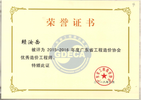 圖5:廣東省優(yōu)秀造價工程師——賴汝岳