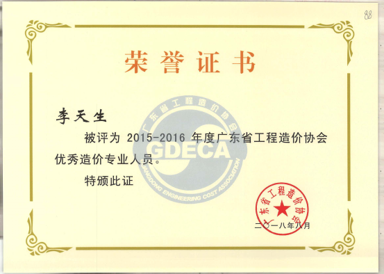 圖7:廣東省優(yōu)秀造價專業(yè)人員——李天生