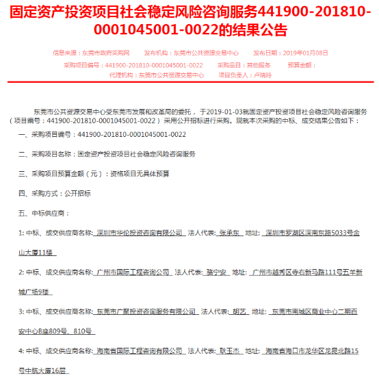 我司成功中標東莞市發改局《固定資產投資項目社會穩定風險咨詢服務》入庫單位