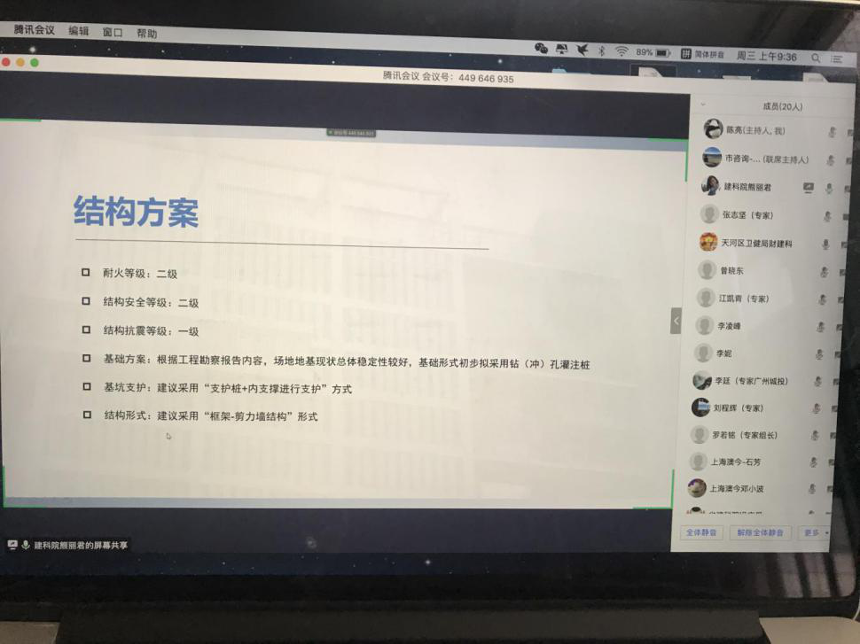 受廣州市天河區發展和改革局委托,廣州市國際工程咨詢公司于2020年2月19日組織召開了《廣州市天河區第二人民醫院建設工程可行性研究報告》專家評估會。為深入貫徹省、市關于新型冠狀病毒疫情防控工作部署,在加強疫情防控的同時,做好“六穩”工作,評估會采用了遠程網絡視頻會議形式進行。會議邀請了建筑工程、巖土工程、給排水工程、建筑電氣、暖通空調、醫院設備和工程造價等專業領域的七位專家,天河區衛生健康局、天河區建設工程項目代建局、中山大學附屬第六醫院、廣東省建筑科學研究院集團股份有限公司、廣州市城市規劃勘測設計研究院和香港澳華醫療產業集團等有關單位的代表參加了會議,合計參會人數有20人。